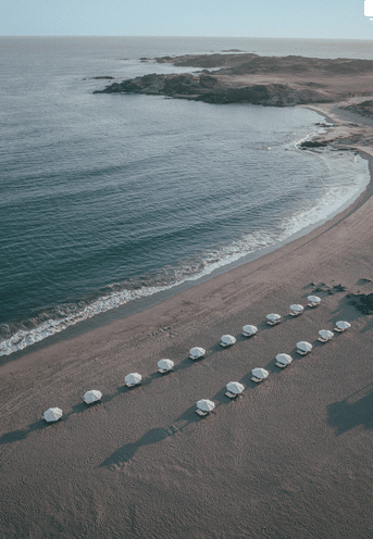 À une trentaine de minutes de l’aéroport de Salalah, un transfert organisé par l’équipe Blossom conduit les participants jusqu’à Alila Hinu Bay Resort. C’est ici, entre océan et désert, que se déroule la retraite. Loin de tout tumulte, ce lieu préservé semble suspendu entre deux mondes, la mer d’un côté, les montagnes rocailleuses de l’autre.