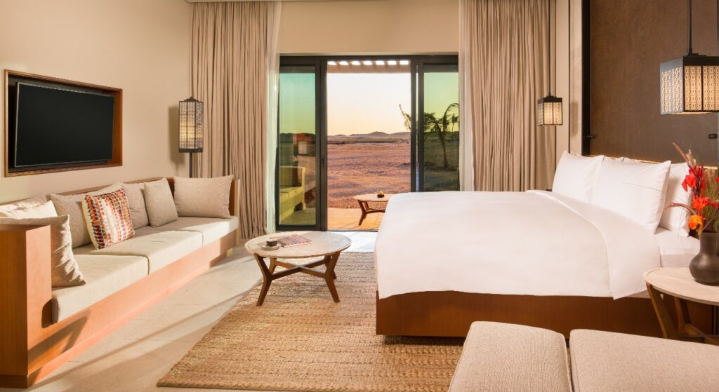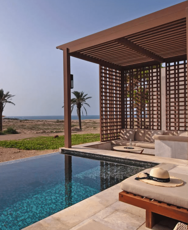 L’architecture contemporaine du resort épouse le paysage, entre lignes épurées et matériaux naturels. Le sable, le bois et la pierre s’y répondent avec élégance. On y vient pour respirer, pour contempler, pour s’ancrer à nouveau dans le rythme lent de la nature. Autour, tout invite à l’exploration : randonnées dans les wadis, excursions dans les villages traditionnels, balades sur la plage au lever du soleil. C’est dans cette atmosphère de calme et d’espace que commence la détox.