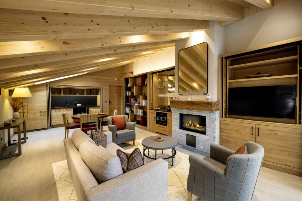 Junior Signature Suites (35 to 40 m²) add a separate sitting area, ideal for curling up with a book or admiring the peaks from the large windows. Then there are the Signature Suites (45 m²), miniature apartments with separate living areas and a cosy ambience that makes you feel both invited and at home.