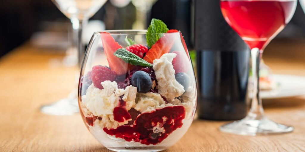 In a hushed atmosphere, you can enjoy, for example: marinated salmon with beet and smoked cream, boletus and Sbrinz risotto, fillet of beef with Périgueux sauce, or salmon trout with salsify and trout roe. And finally, a poached pear with lavender or a chocolate terrine with goat’s milk.