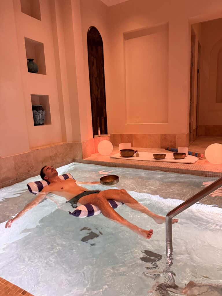 Le lit, immense et d’un confort absolu, m’a offert des nuits parfaites. Le package wellness que propose le Madinat inclut des attentions toutes particulières pour le sommeil : aromathérapie et masque LED pour favoriser la récupération… J’ai trouvé cette approche remarquable, car elle montre que le bien-être ne se limite pas aux soins en spa, mais s’intègre aussi dans l’expérience intime de la chambre.