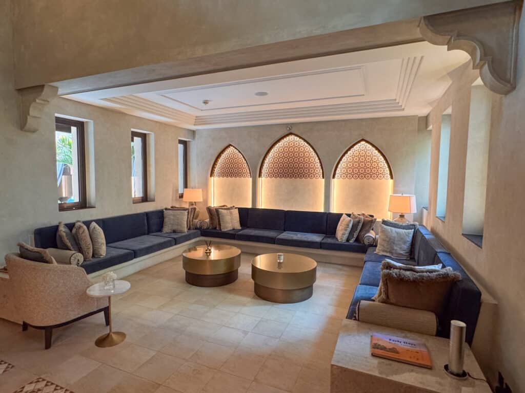 J’ai séjourné dans l’une des villas privées Dar Al Masyaf, et plus précisément dans une Palm House Lagoon Room. L’architecture et la décoration m’ont directement plongé dans un univers oriental raffiné.