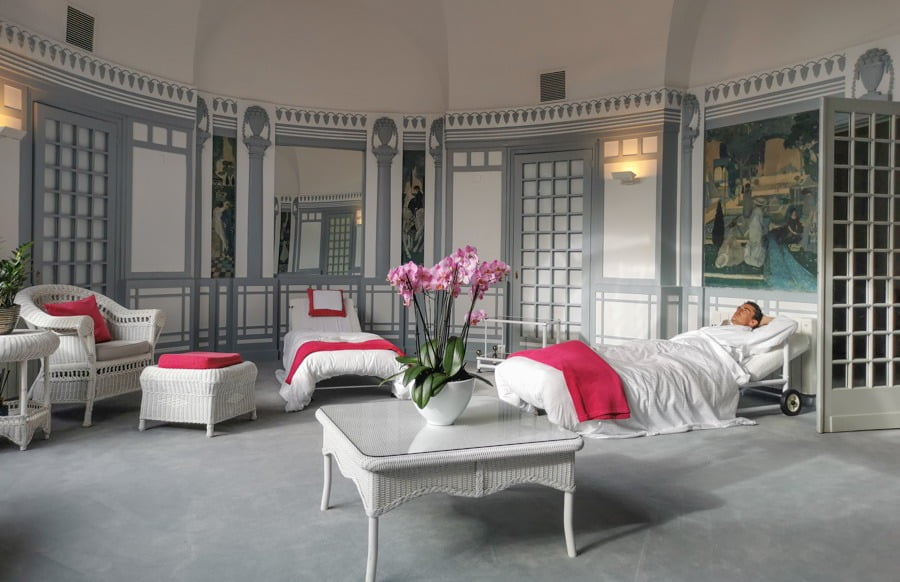 J’ai été absolument charmé par le côté historique du salon de repos « Aga Khan », l’une des plus belles salles de détente post-soins que j’ai vues à ce jour. Détails très raffinés de la Belle Epoque, et sensation de passer un moment hors du temps…