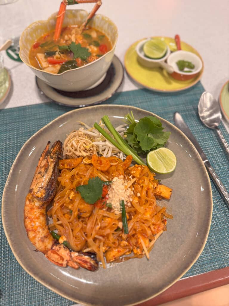 Les repas sont un vrai plaisir : curry vert de légumes croquants, poisson grillé à la sauce tamarin, salade de papaye relevée juste ce qu’il faut… Les plats sont joliment présentés, les portions équilibrées, et l’assaisonnement toujours juste. On mange ici avec gourmandise, mais sans excès.