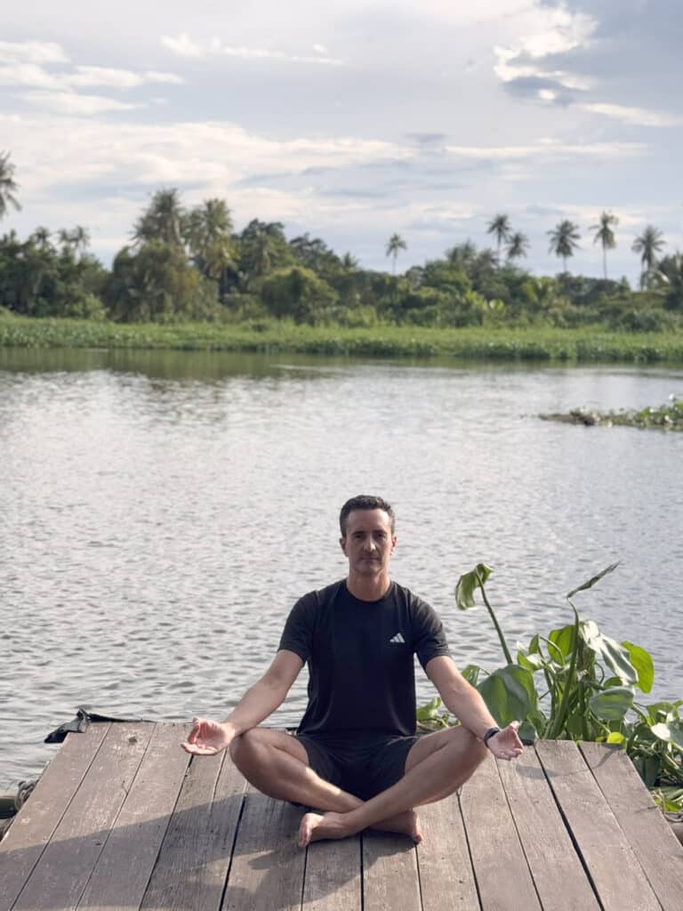 Parmi les expériences marquantes, tout d’abord le yoga en bord de rivière. Le cadre, absolument paisible, se prête à merveille à la pratique. Le professeur, très jeune, avec une voix douce et assurée, a guidé la séance autour de postures d’ancrage et de respiration consciente. Je trouve toujours que c’est important le lieu où on pratique le yoga, et pour le coup, cette plateforme est parfaite !