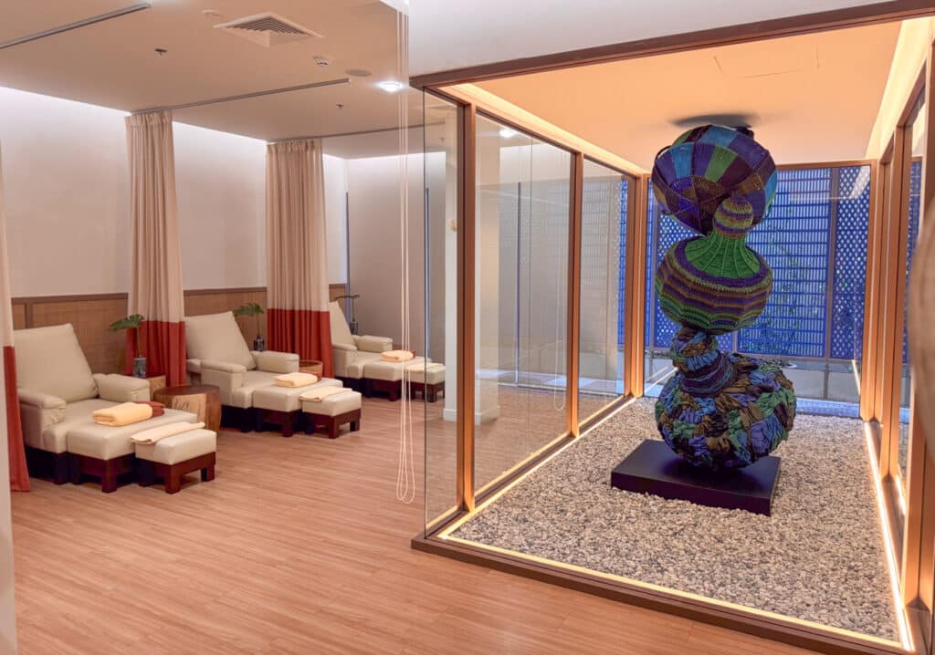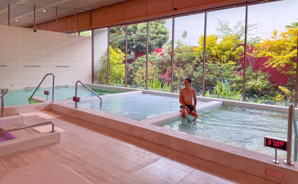 L’espace d’hydrothérapie de RXV est l’un des plus vastes que j’ai vus pour un établissement de ce standing. Différents bassins dont un bain à oxygène, un sauna infrarouge, un hammam, des douches à expérience, et des zones de relaxation permettent de composer un vrai parcours bien-être. L’architecture, ouverte sur la végétation, crée une atmosphère reposante et lumineuse. On passe facilement une heure à alterner les températures et les sensations, dans un silence bienvenu. C’est un lieu où le corps se relâche complètement, où le mental se vide naturellement.