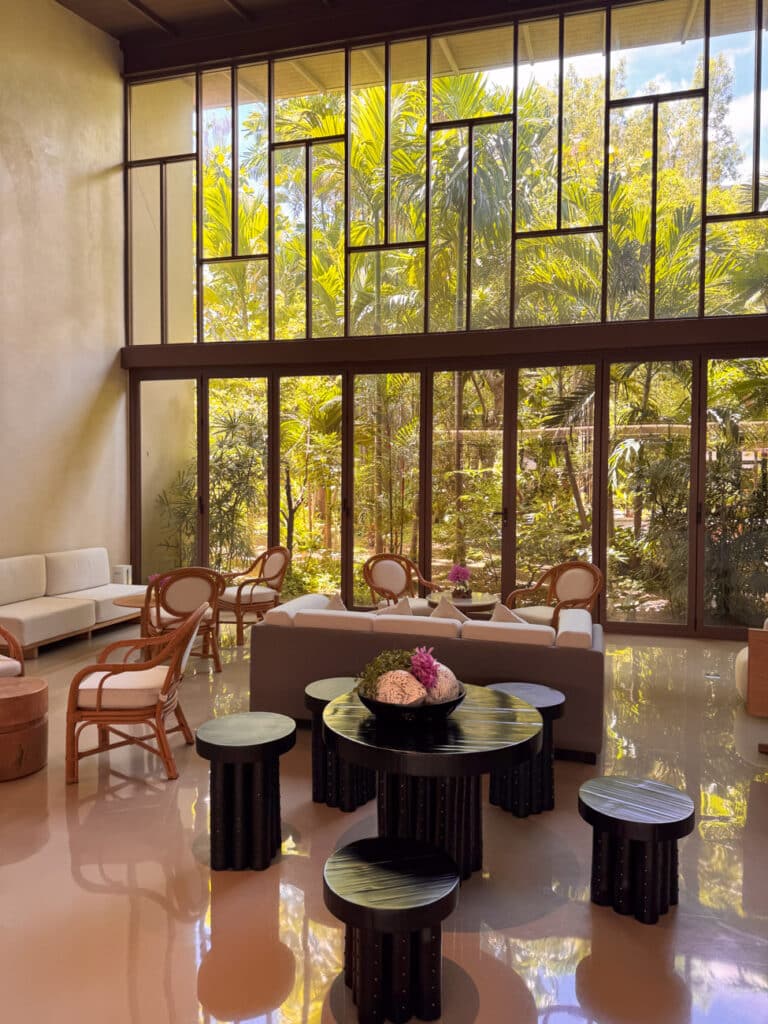 À une heure seulement du centre de Bangkok, RXV Wellness Village offre une véritable respiration. Niché sur les rives tranquilles de la rivière Tha Chin, le domaine séduit d’emblée par sa nature luxuriante : de grands arbres, des jardins botaniques et une atmosphère paisible où l’on entend plus les oiseaux que les voitures.
