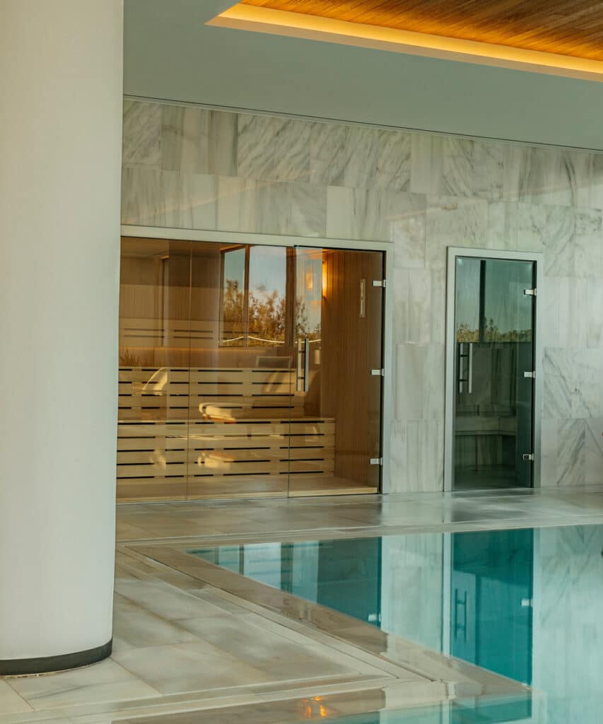 Au-delà des cabines de soin, le spa propose un parcours aquatique complet : piscine dynamique, hammam, sauna, bain à remous extérieur et douches sensorielles. L’ensemble surplombe la mer, offrant une vue apaisante qui prolonge naturellement l’expérience. Après un soin, on s’installe sur les transats du rooftop, un jus vert à la main, et on laisse le regard se perdre dans le bleu. C’est aussi cela, le wellness version Villa Le Blanc, ne rien forcer, laisser le corps et l’esprit se synchroniser avec le rythme de l’île.